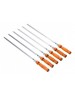 Шесть нержавеющих шампуров с удобными деревянными рукоятками.